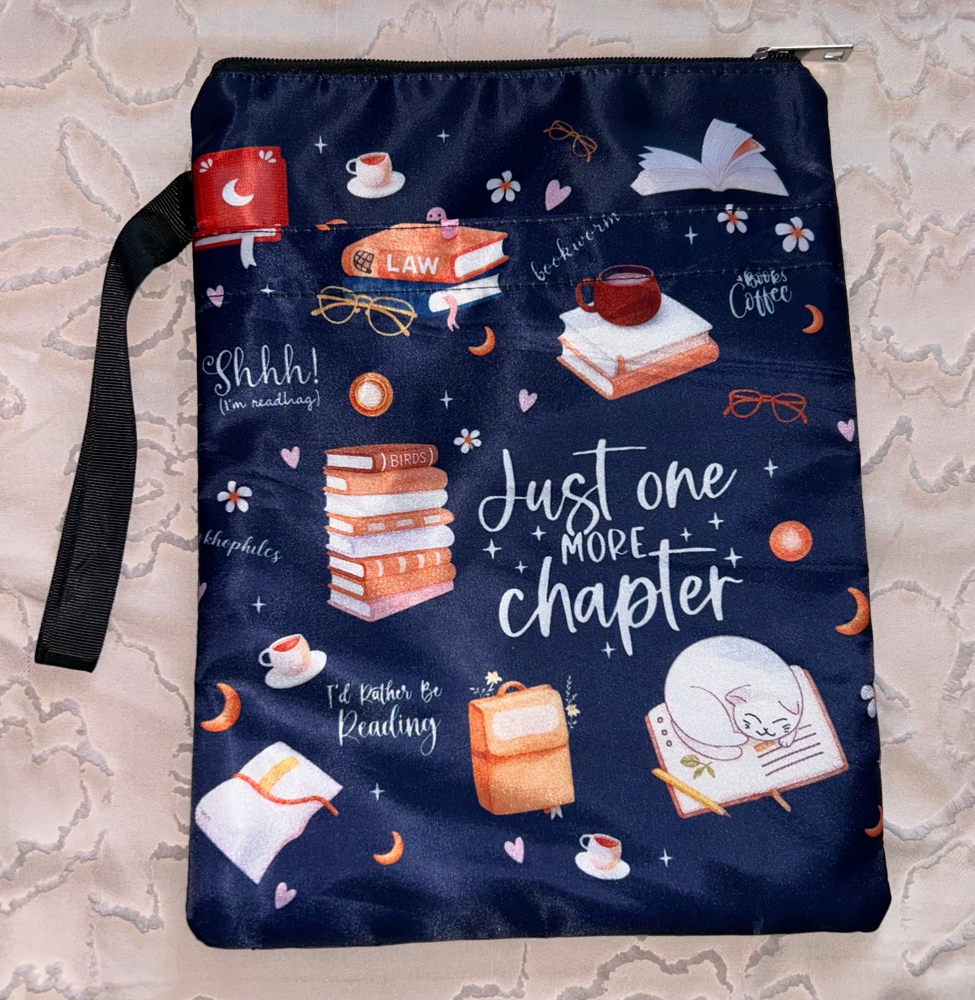 This cute book pouch is the ideal accessory to hold your books, iPad, Kindle, and any other little bits you need throughout the day! Keep everything secure inside a book pouch! It features a zip at the top, a front pocket and a handy wrist handle.